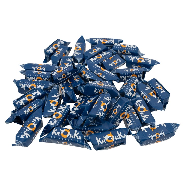 Krówki o smaku mlecznym 220 g Krówka Kołobrzeska to klasyczne, ręcznie robione słodycze o kremowej konsystencji i wyraźnym, mlecznym aromacie. Delikatnie ciągnące, rozpływają się w ustach, przywołując smak tradycyjnych, domowych łakoci.